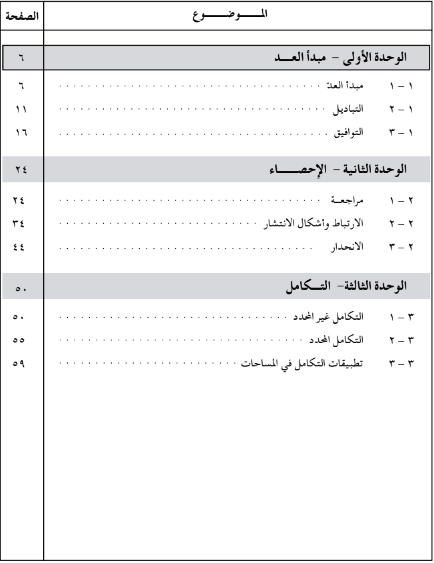 تحميل كتاب رياضيات صف ثالث ثانوي ادبي مبدا العد الاحصاء التكامل مدونة عروق