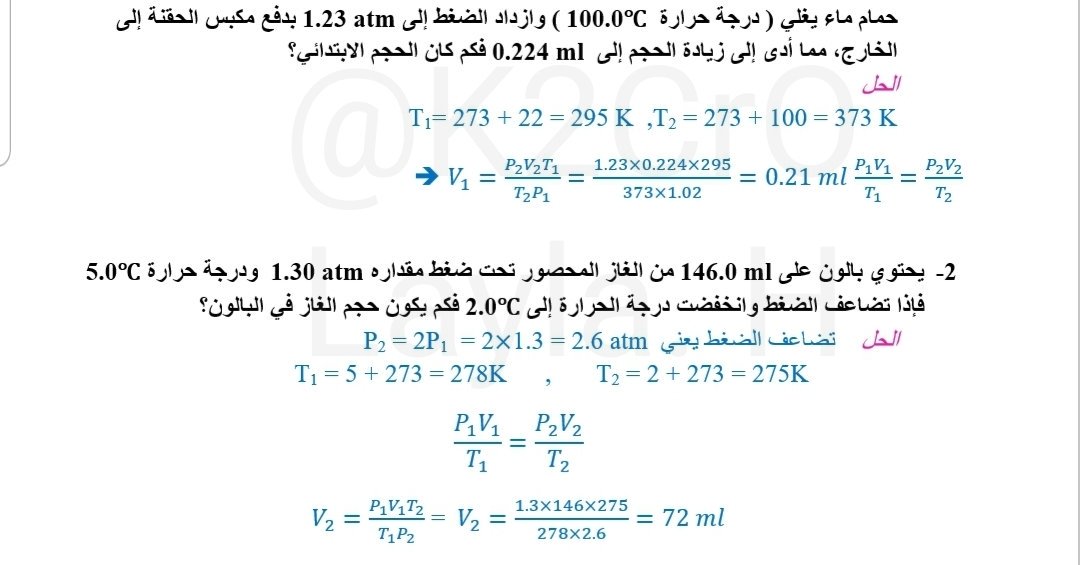 مسائل تدريبية كيمياء 4 الفصل 1 الدرس 1 1 افترض أن درجة الحرارة وكمية الغاز ثابتان في المسائل التالة موقع المختصر