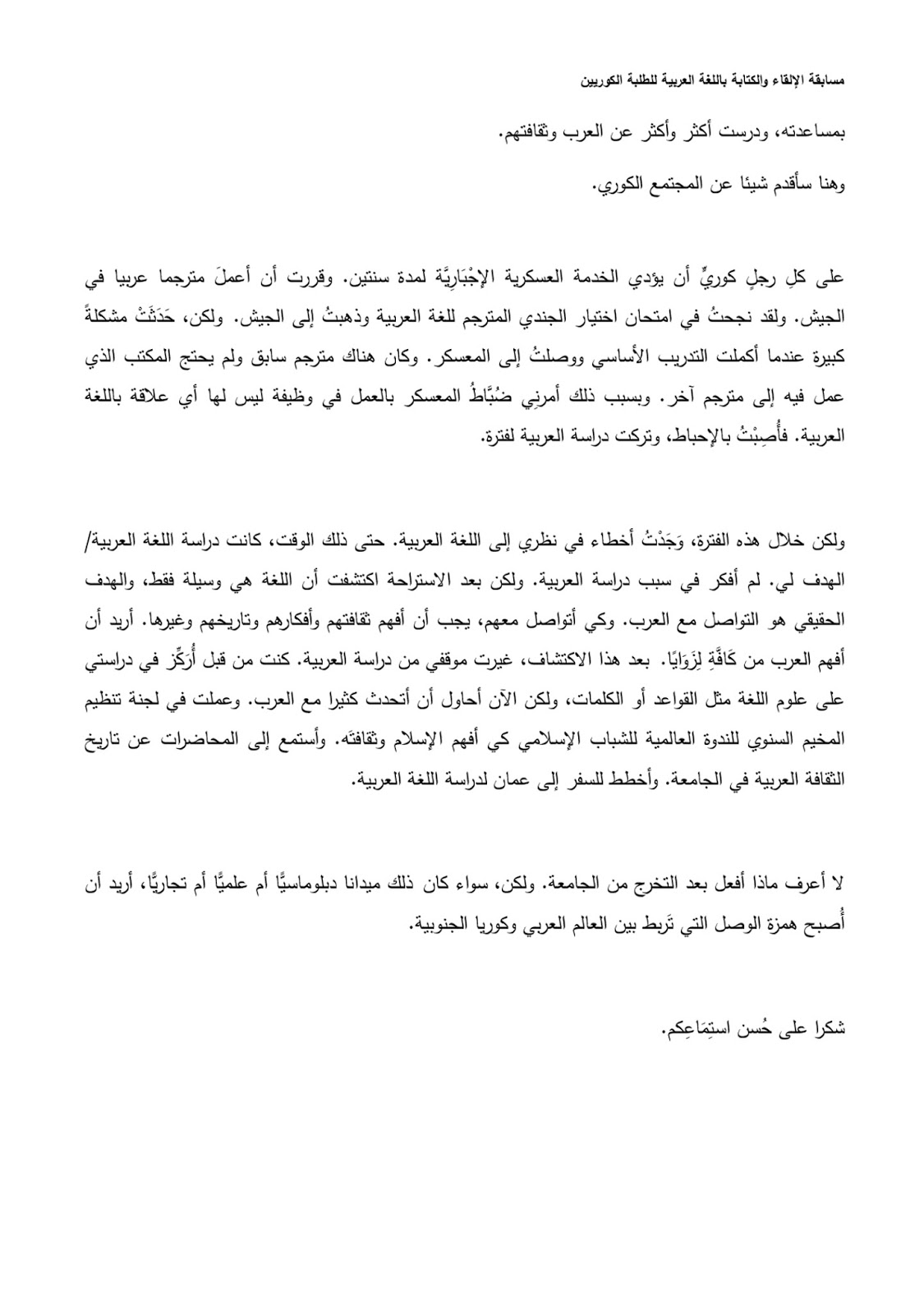 شكرا لحسن استماعكم بالعربي
