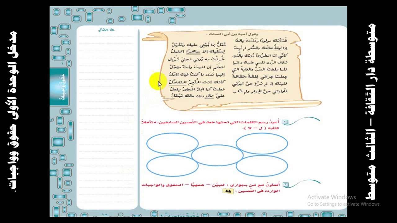 حل كتاب لغتي مدخل الوحدة الاولى حقوق وواجبات ثالث متوسط ف1 Youtube