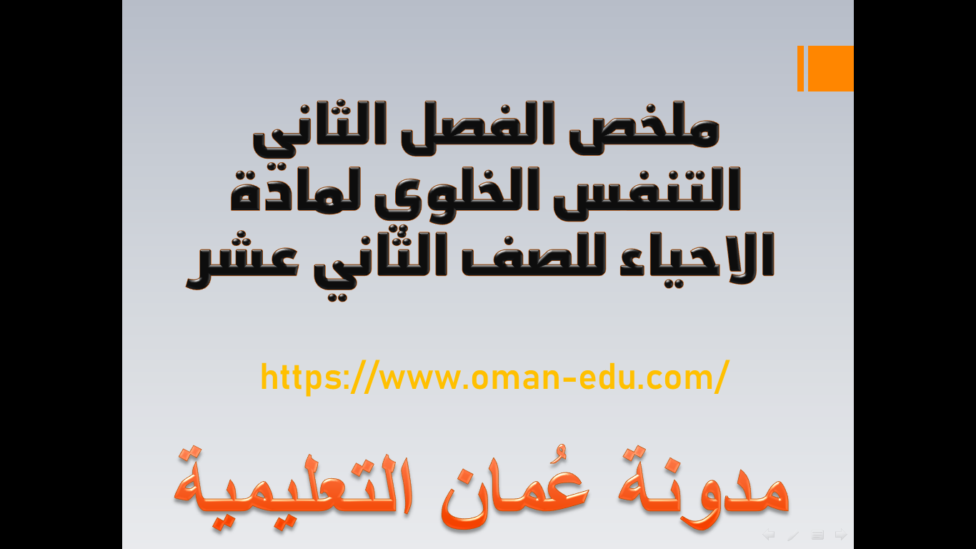 ملخص الفصل الثاني التنفس الخلوي لمادة الاحياء للصف الثاني عشر